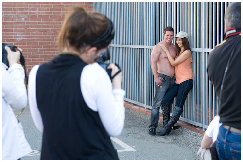 Curious onlookers stopped to look and ask who the celebrities being photographed were. One even wondered if Frank played for the Freo Dockers!