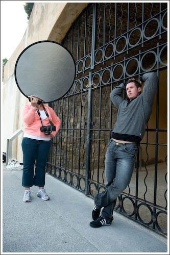 As the sun dipped lower, Greg took the opportunity to show participants how to balance ambient with fill flash, creating brilliant, evocative portraits of Sophie using fill flash directed into a gold reflector.
