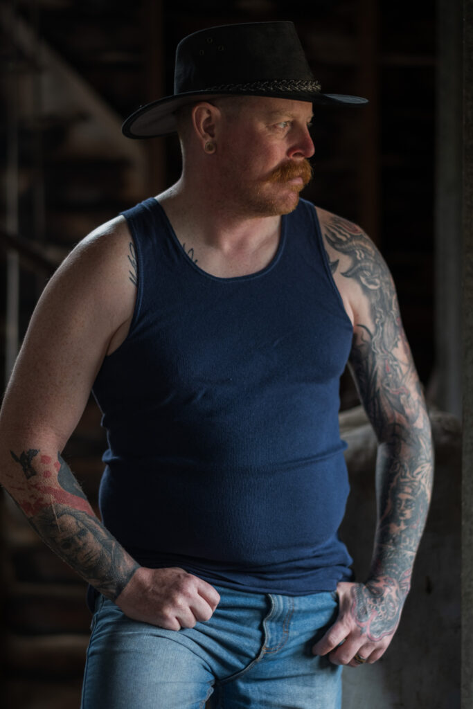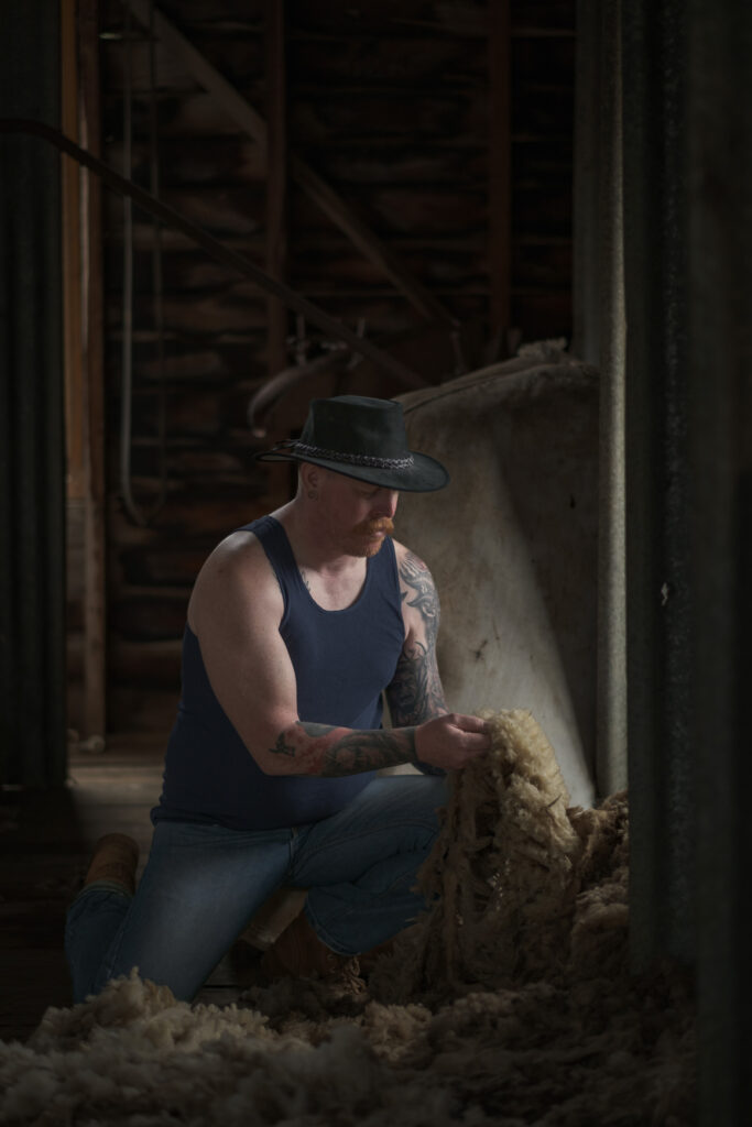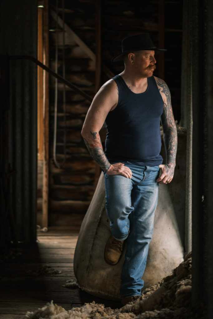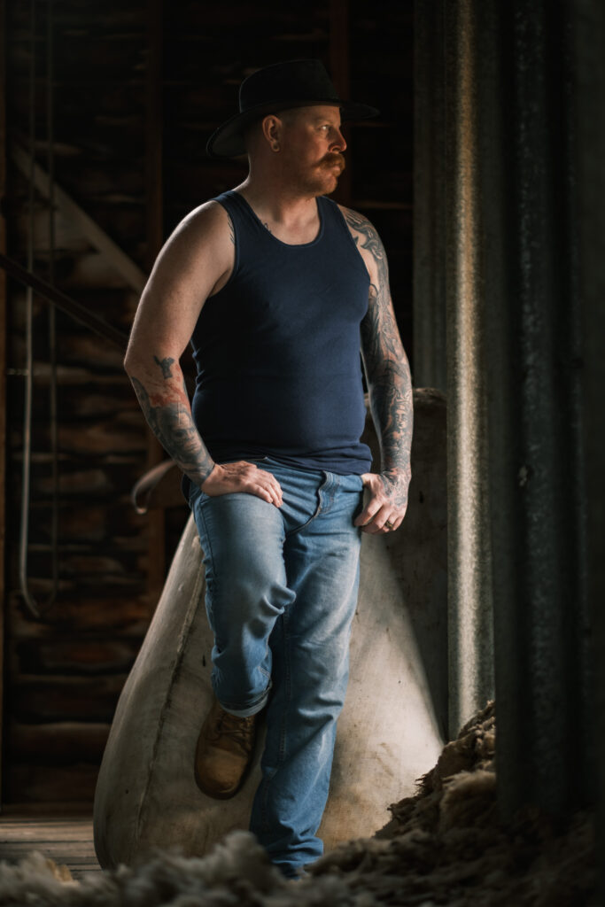Consider an environmental portrait: a shearer in a hot, dusty shearing shed. Afternoon light passes through a high window, striking his face at an angle and illuminating suspended fibres and the rough timber behind him. The setting is rich with detail and atmosphere, and picture styles can create very different meanings from the moment.