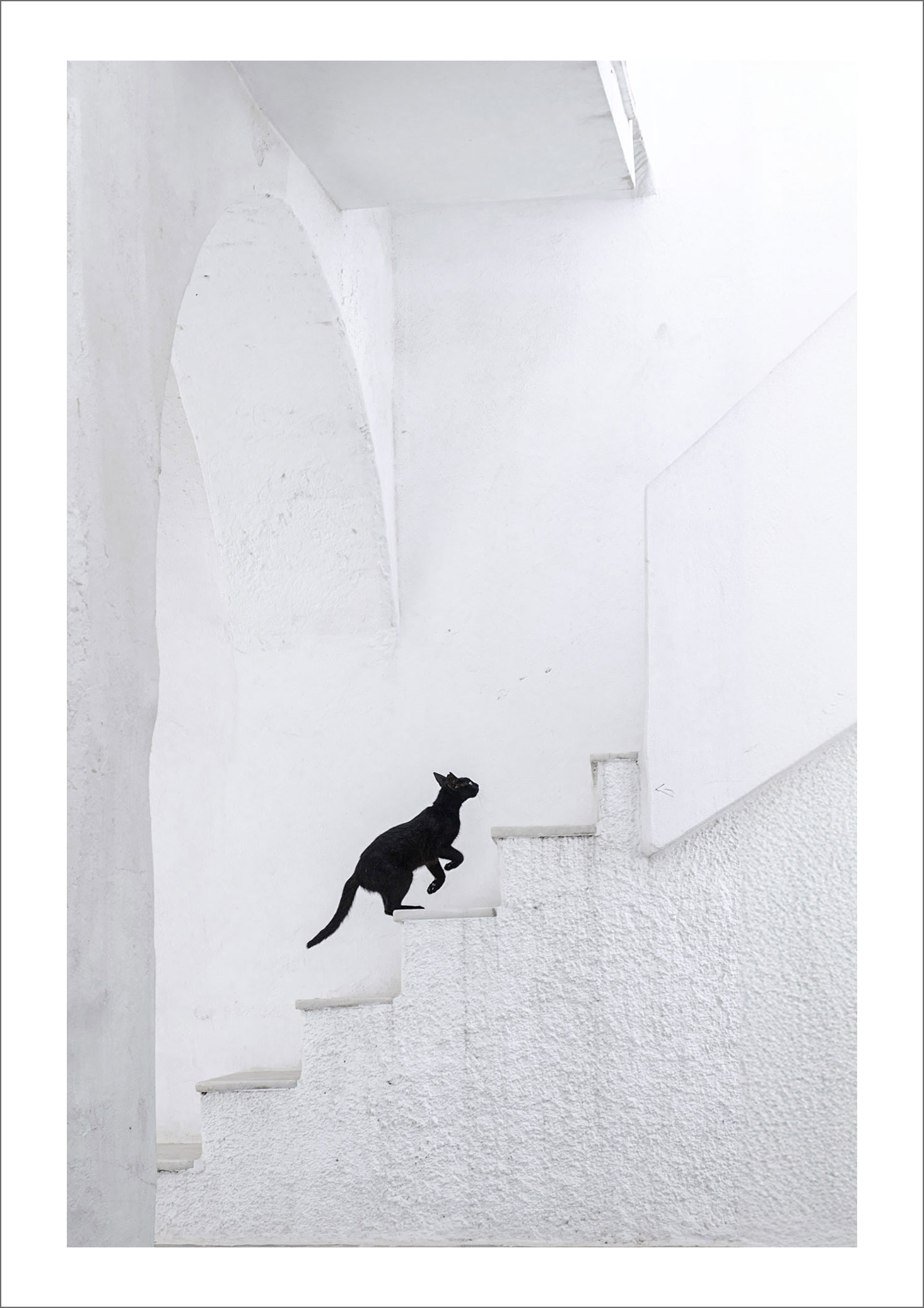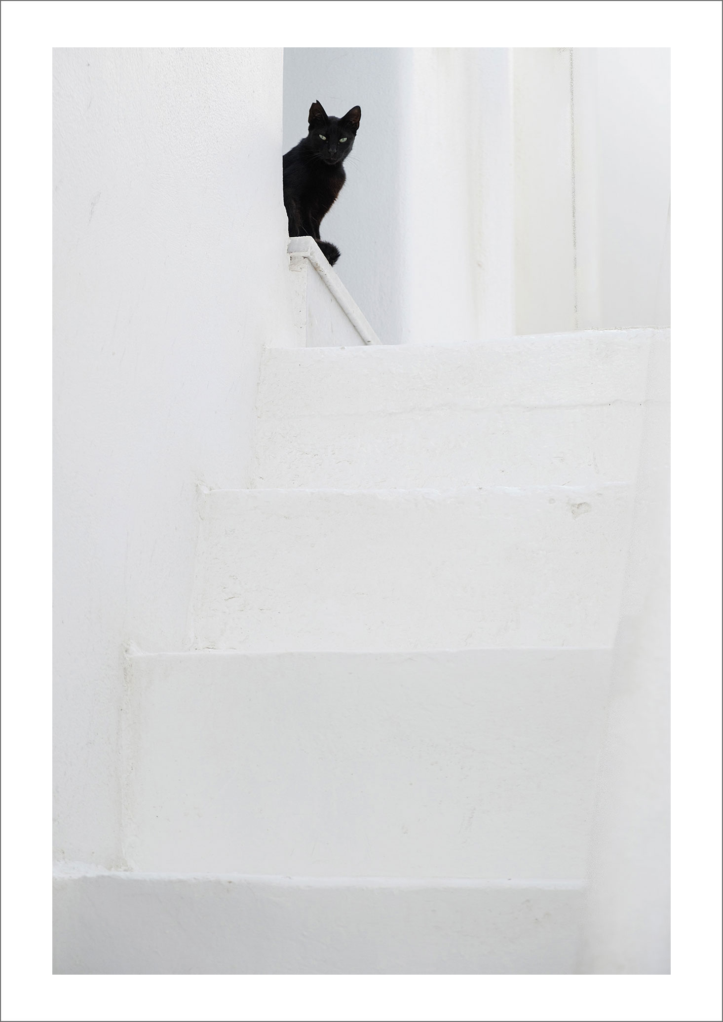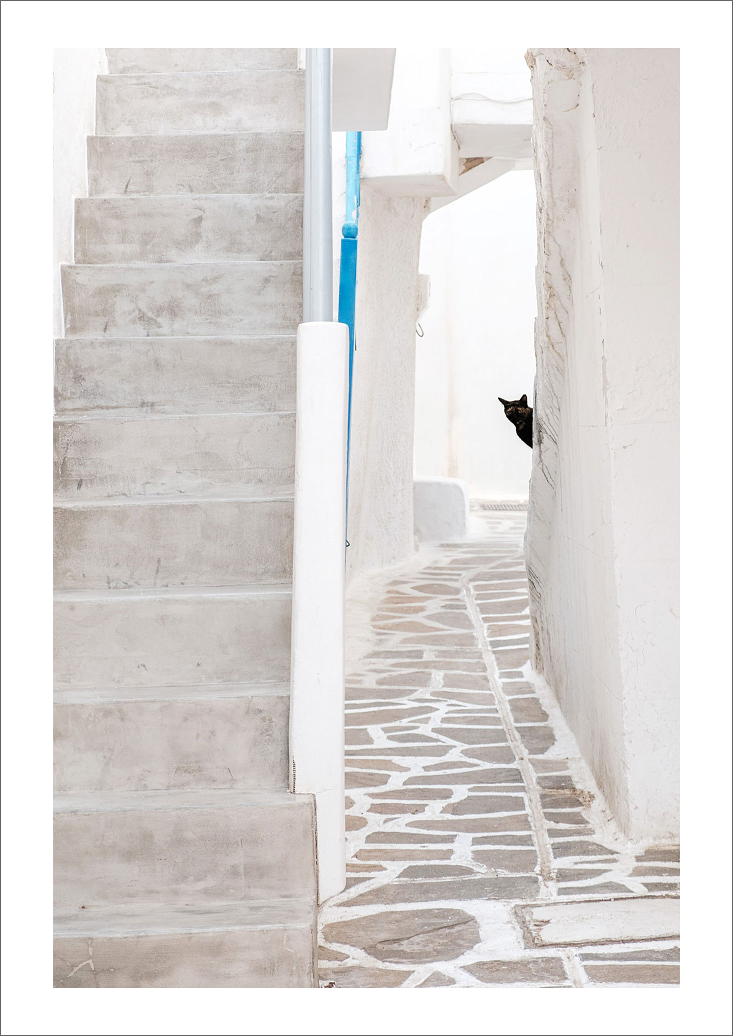 These images were taken on the island of Naxos, the largest isle in the Cycladic chain of islands. They feature cats doing their thing in the white-washed lanes and alleys of the old town in Naxos. You can frame them separately or put them as a triptych in a single frame.