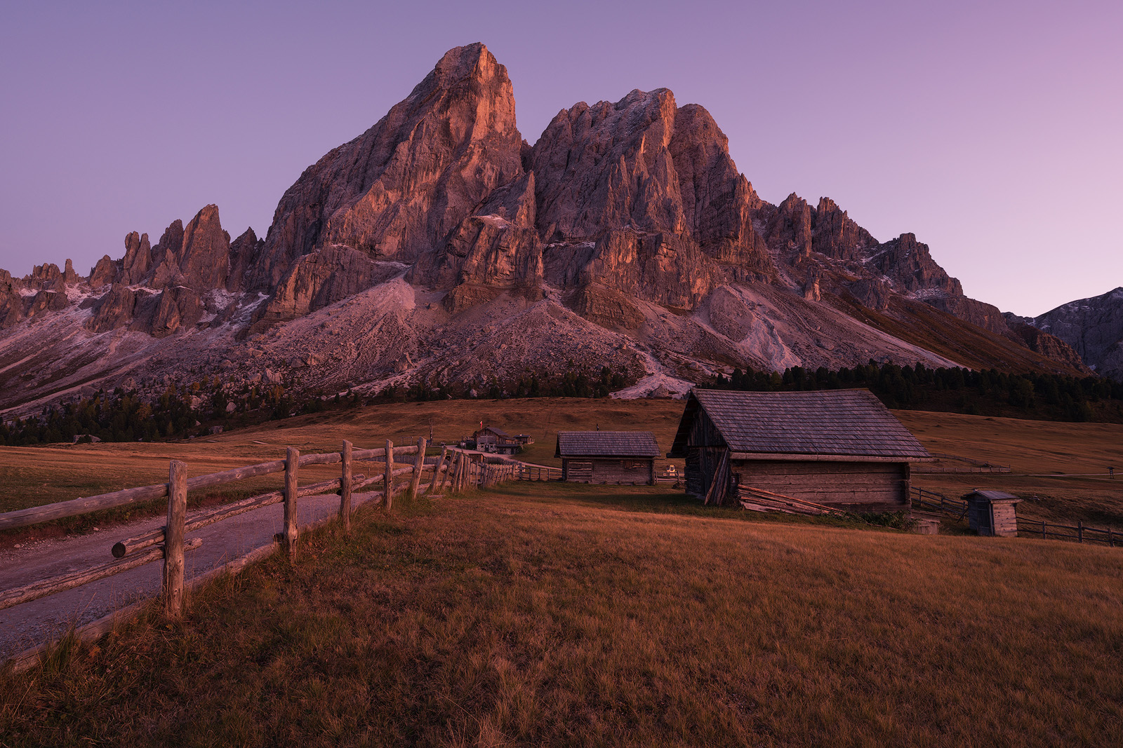 Day 3: We travel to Passo delle Erbe, photographing the iconic churches in the Val di Funes on the way. We shoot the San Giovanni church located in the middle of the meadow with the Odle Mountains as its backdrop. We then head to Santa Maddalena for an elevated view of the church and village. Overnight in Passo delle Erbe.