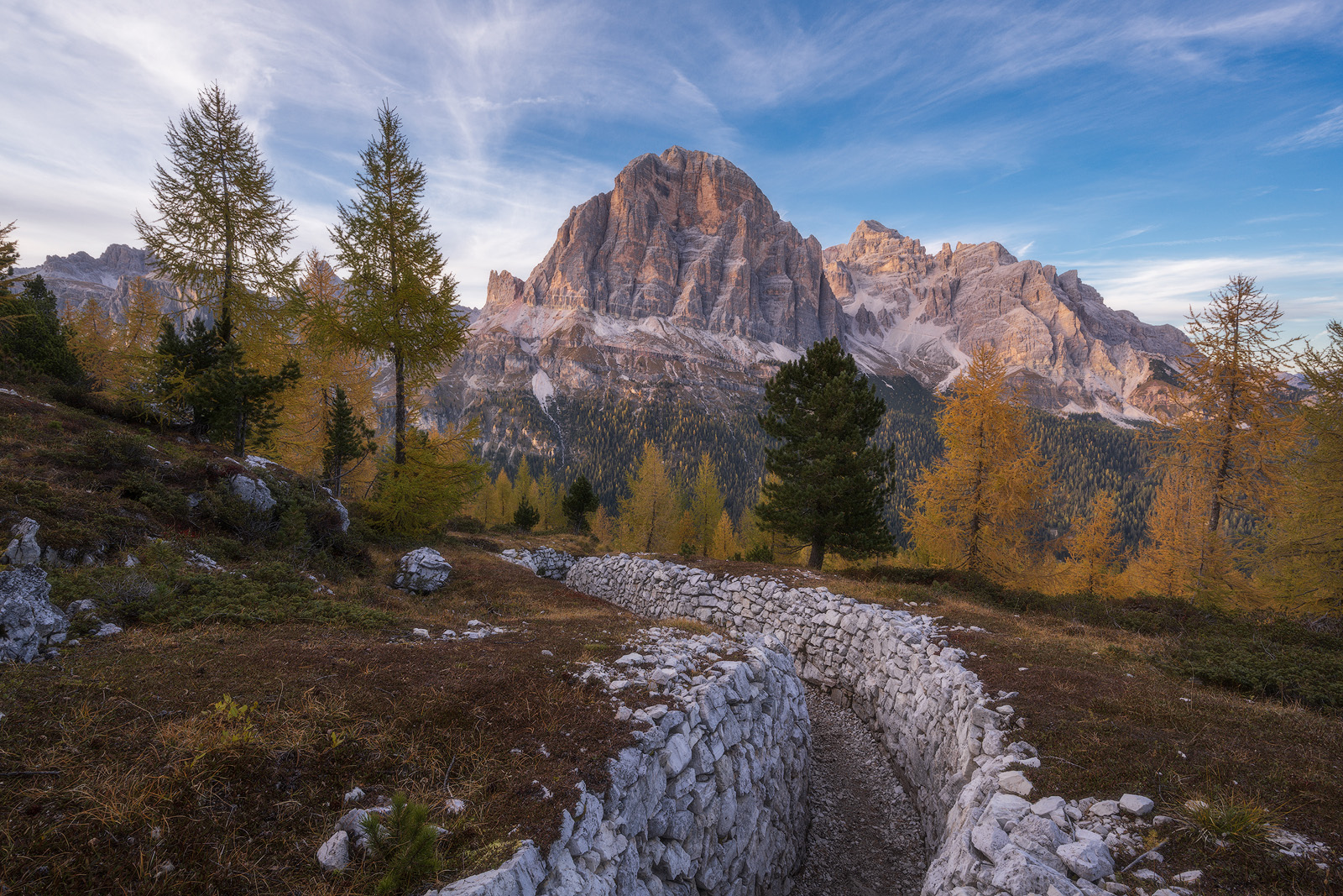 Day 4: We spend the day at Passo delle Erbe, where the landscape is stunning and dominated by the mighty Sass di Puttia peak. We are here in autumn, so burnished gold colours will paint this landscape.